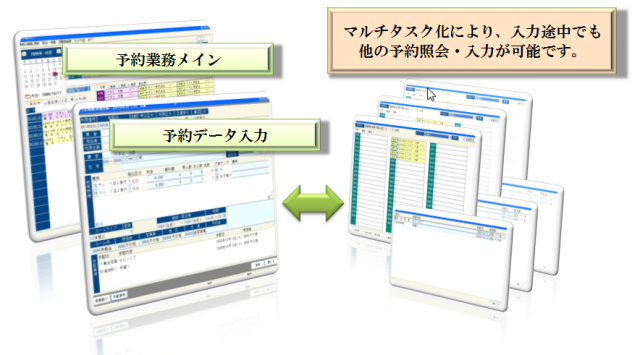 予約データ入力画面はマルチタスク化されておりますので、入力途中でも他の予約照会・入力が可能です。